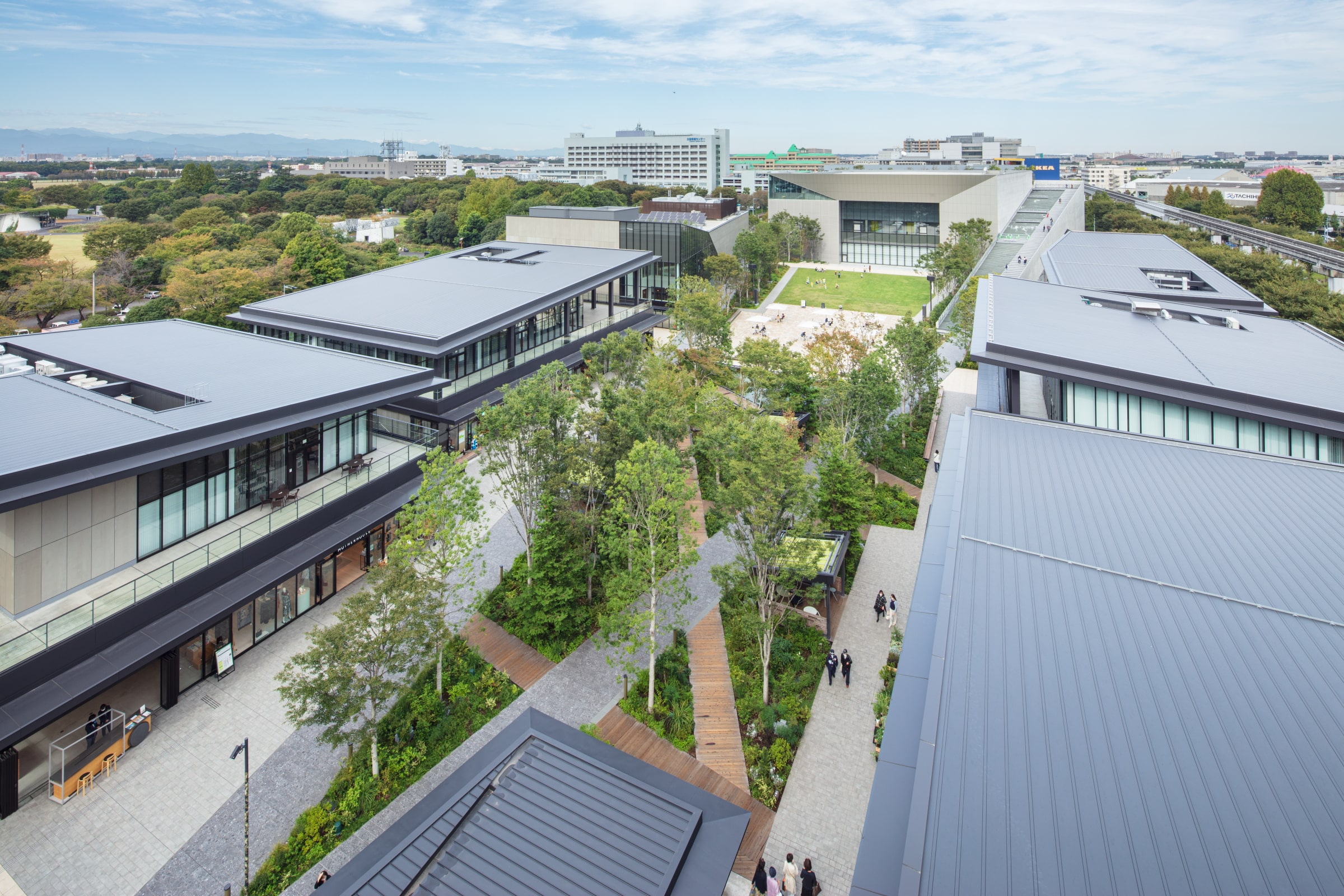 “GREEN SPRING’s key concept is ‘wellbeing’. You might know that Big Tech companies in the US all have their main offices located outside of congested office areas. Our property stands adjacent to Tokyo’s largest park Showa Kinen Park. This means our office tenants can enjoy the park’s view from their spacious open-air balconies all year round.”